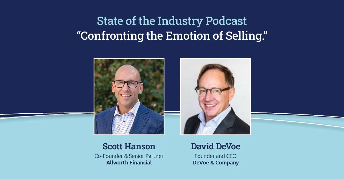 David DeVoe joins Allworth Financial’s State of the Industry podcast to discuss the “Heart of the Deal: Confronting the Emotion of Selling.”
